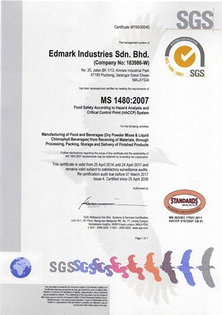 يتم تصنيع منتجات EDMARK دون أي تنازلات عندما يتعلق الأمر بالجودة الفائقة. نحن حاصلون على شهادة ISO 22000: 2005 ويمتلك مصنعنا التصنيعي GMP في ماليزيا أحدث المعدات والروبوتات الصناعية وميزات توفير الطاقة والصديقة للبيئة.